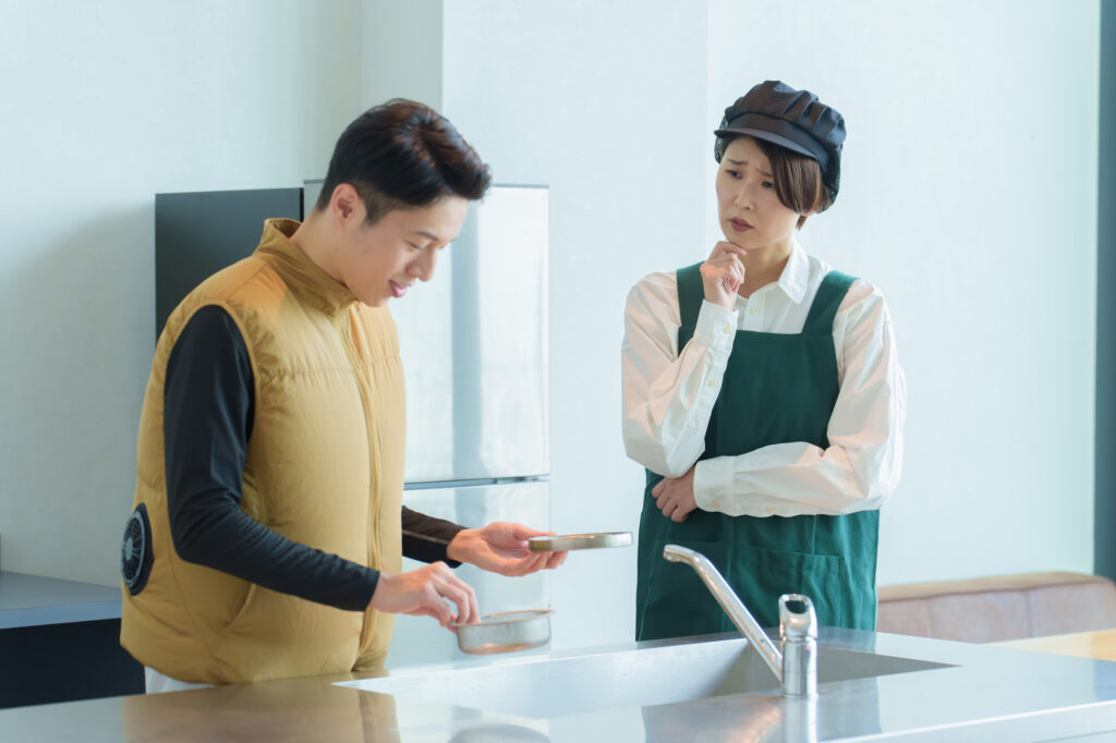 菜箸や食べ残しなど、固形物が原因の場合は逆につまりを悪化させる可能性があるため、ご自分で対処せずに水道修理業者を呼んだ方が良いでしょう。