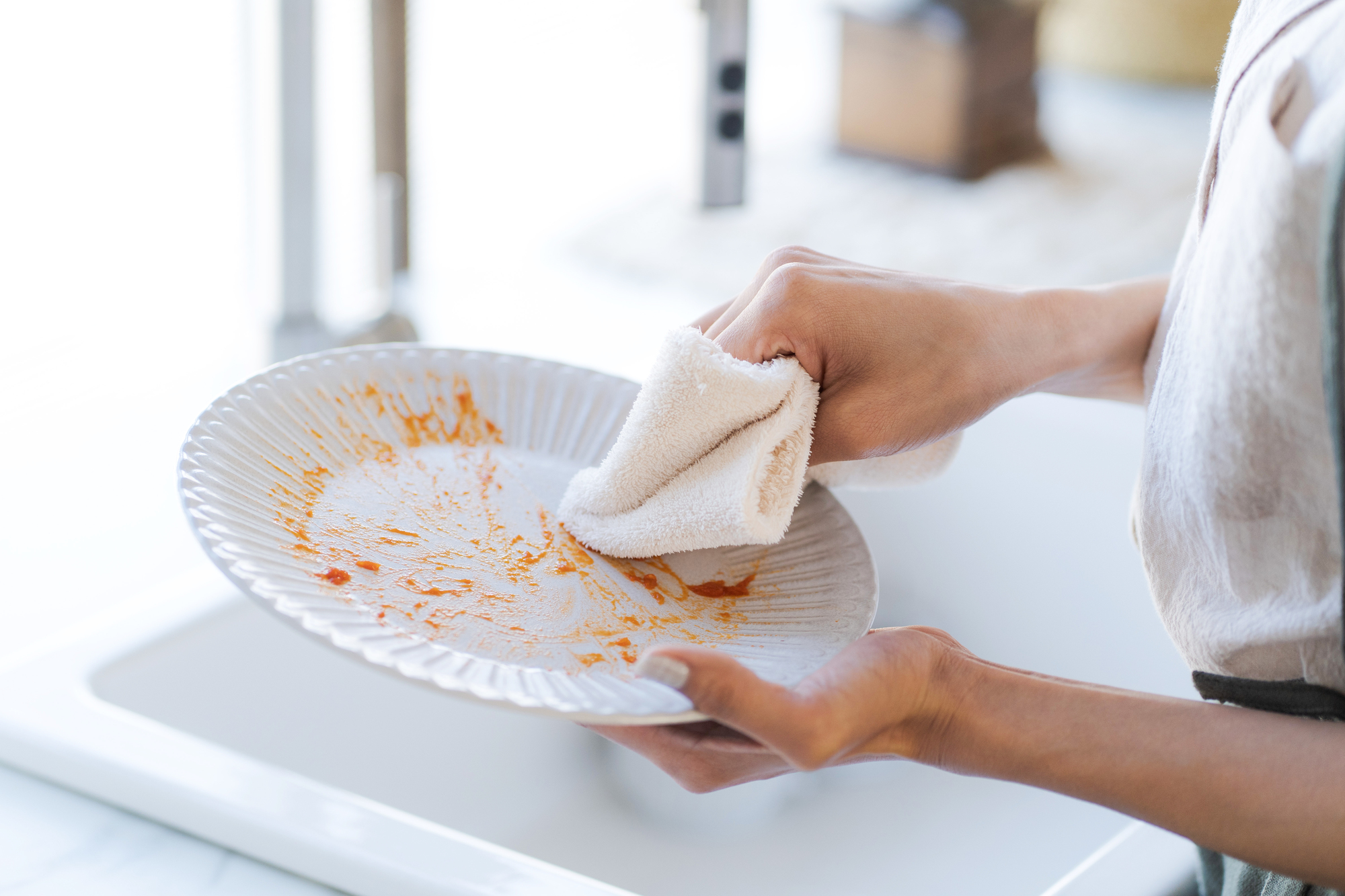 - フライパンやお皿についた油は、キッチンペーパーなどで拭き取ってから洗う
